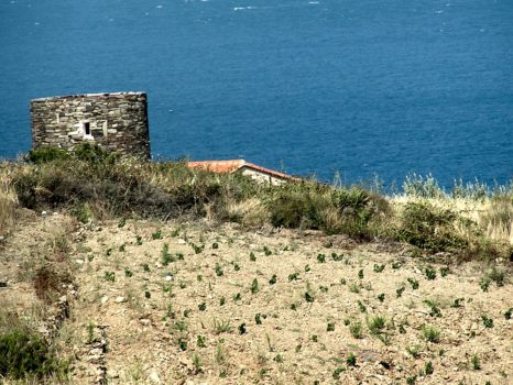 Steep slope, unstable schist soils and Mediterranean rains (rare but violent) have led man to build terraces for cultivation. Built in dry stone these are typical of the area. They make it possible to work small parcels on flat ground and limit erosion by canalizing rain waters. All work here is of course performed by hand.